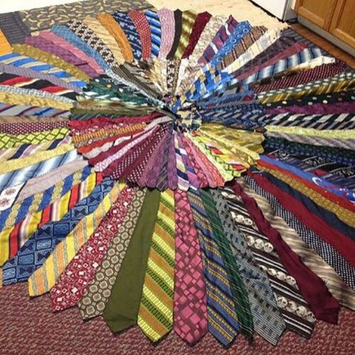 Quando se tem uma coleção de gravatas velhas que já não são mais usadas, faça-as virarem um tapete criativo. Pode usá-las inteiras ou cortá-las em retalhos.