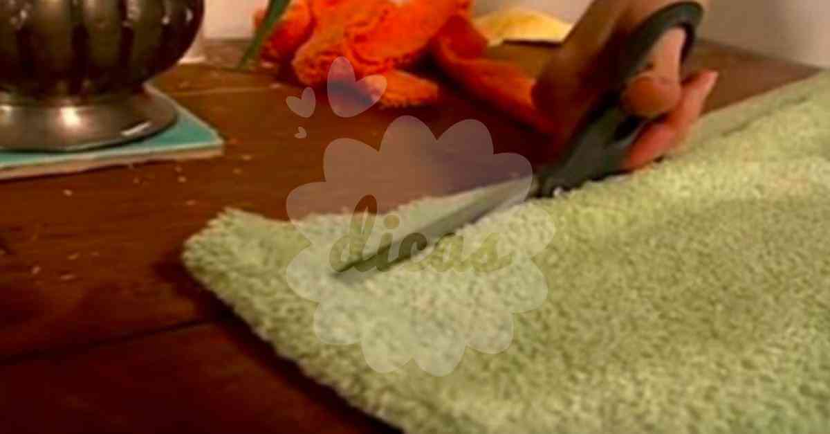 Esse modelo é diferente do anterior. Você vai comprar uma pelúcia em metro para fazer aqueles tapetes peludinhos fofinhos. Não usa tela nem agulha de crochê e nem fio de lã.