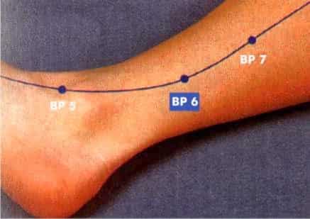 Esse ponto localiza-se quatro dedos de largura acima do osso do tornozelo interno.