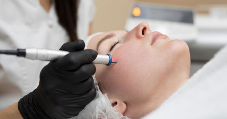 Na terapia com laser, o aparelho de laser é aplicado nos vasinhos com o objetivo de deixá-los menos visíveis. A quantidade de sessões varia para cada paciente, e o tratamento deve ser feito por um médico.