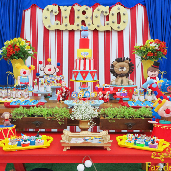 Em toda festa infantil tem palhaço, bexigas, mesmo que a temática não seja circo. Então por que não fazer uma festa especial com todos os elementos do circo? Se a criança já visitou um lugar desse e gostou da experiência, com certeza vai ser uma temática que ela vai gostar também. Muitos palhaços, malabares, mágica, cores vivas, brilho e tendas não podem faltar.