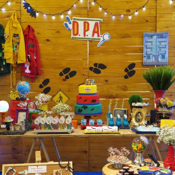 DPA é a sigla dos Detetives do Prédio Azul, uma série de televisão que passa no canal Gloob e também faz a cabeça da criançada. Tanto meninas quanto meninos adoram e há muitos produtos nessa temática para montar uma linda festa.