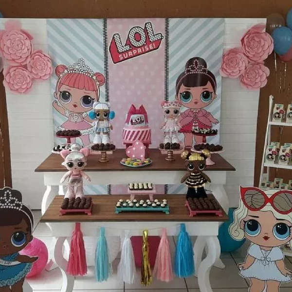 LOL Surprise é uma coleção de bonecas que as meninas, especialmente as mais novinhas, são apaixonadas. As bonequinhas são graciosas e a decoração da festa fica linda, bem colorida e cheia de detalhes.
