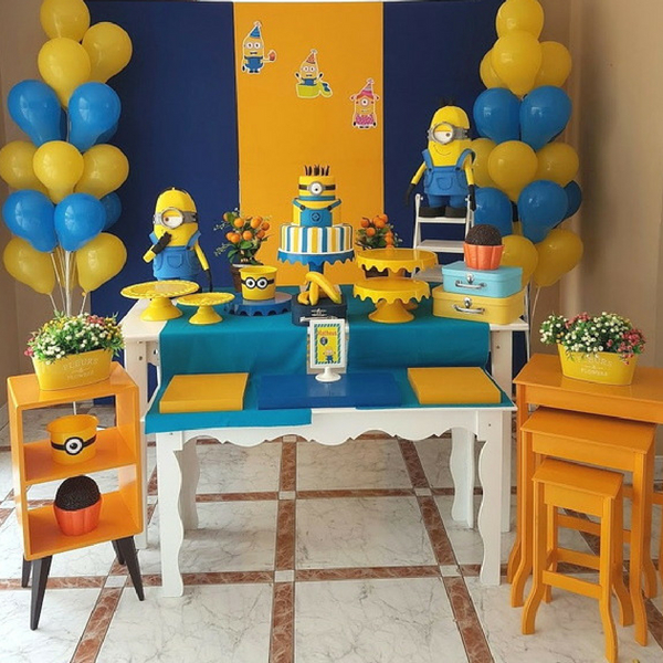 A festa com temática de Minions fica uma fofura. Esses personagens ganharam todos os públicos, desde os pequenos até seus avós, e se a criança tem interesse por eles, é uma linda opção de tema a escolher. A festa vai ficar bem colorida, mas com base no amarelo e no azul, deixando o ambiente bem animado.