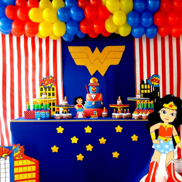 A super-heroína das meninas é a mulher maravilha há muitos anos, e especialmente agora, com a nova versão, as pequenas também sabem quem é a personagem e são apaixonadas por ela. Uma festa de Mulher Maravilha fica linda, com muito vermelho, azul e amarelo, coroas, capas e acessórios da personagem.