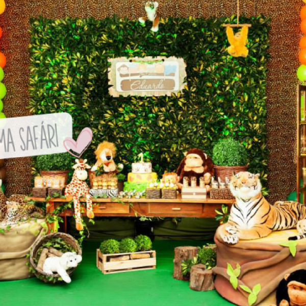 Temas de festa infantil que envolvam o reino animal quase sempre agradam os meninos. Em especial o tema safári, em que os animais são selvagens e chamam mais a atenção. A festa pode ter muito verde, cores bem vivas e animais de pelúcia. Dá para criar toda uma atmosfera de selva para envolver os pequenos em uma aventura dentro da festa.