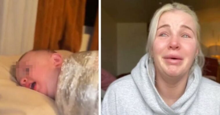 No vídeo, o filho da TikToker está enrolado no plástico bem firme, sem conseguir mexer nem os braços e nem as pernas. Depois, a criança é empurrada pelo pai, que está com um uniforme militar, de maneira constante. Quando a criança está sendo empurrada, ela cai várias vezes na cama do casal.