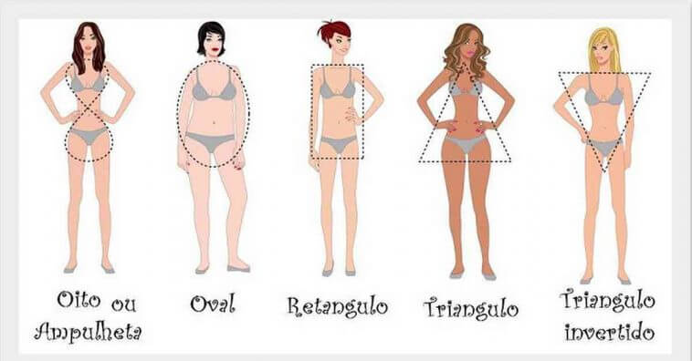 Uma mulher com barriga em formato retangular possui os ombros e o quadril na mesma largura e é, em geral, uma mulher com poucas curvas, uma vez que a gordura se distribui equilibradamente por todo o corpo. Se recomenda a prática de exercício físico e exercícios aeróbicos, de forma a aumentar a massa muscular, e a ingestão de aveia, que evita a absorção de tantos carboidratos. A barriga em formato de triângulo invertido possui um perfil definido por quadril fino e ombros largos. A gordura tende a se acumular no abdômen e por isso a barriga fica mais cheinha. Você deve evitar ter uma vida sedentária. Se recomenda a ingestão de produtos com ômega 3 e a prática de exercícios localizados. Finalmente, quem possui o formato de ampulheta tende a acumular gordura na parte superior da barriga, que se estende para a cintura. Sugerimos também a prática de exercícios localizados, na barriga, especialmente.