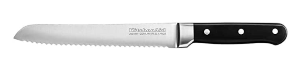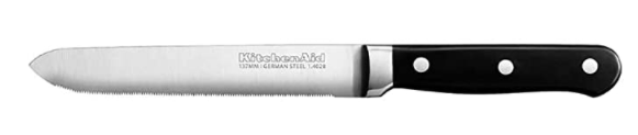 É diferente da faca de pão no sentido de que a serra tem dentes menores, ideal para fatiar tomates e cebolas, além de frutas escorregadias e no que mais você se sentir confortável para usá-la.