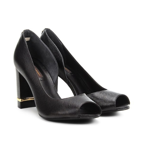 O peep toe é um sapato de salto largo, com a parte de trás fechada e a frente levemente aberta nos dedos. A parte de cima do pé, sobre os dedos, também é fechada, apenas com uma faixa. Ele pode ter salto anabela também, então a escolha é sua. É um dos tipos de sapatos femininos para quando quer usar salto, mas que não chegue a ser uma sandália ou scarpin.