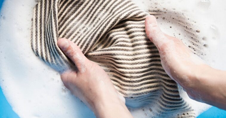 - Depois enxágue a peça e coloque para lavar na máquina normalmente.