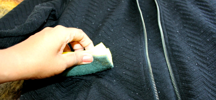 Conforme for passando, eles vão se soltando da roupa e grudando na esponja. Se forem muitos, tire o excesso e mantenha a esponja úmida. Para esse método é importante que a esponja seja nova, ou somente usada para isso, para garantir que ela não levará resíduos nem para a sua roupa e nem para a louça lavada.