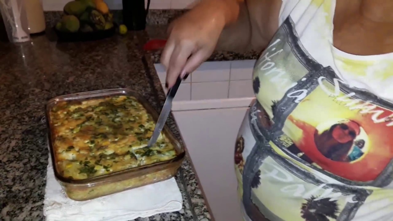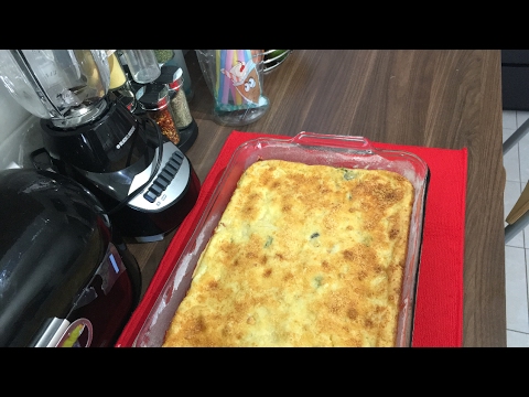 Nessa versão você faz uma massa líquida e prepara o recheio separado. Depois monta com uma camada de massa, o recheio e mais massa. Veja como fazer, como mostra o canal da Deby Morais: