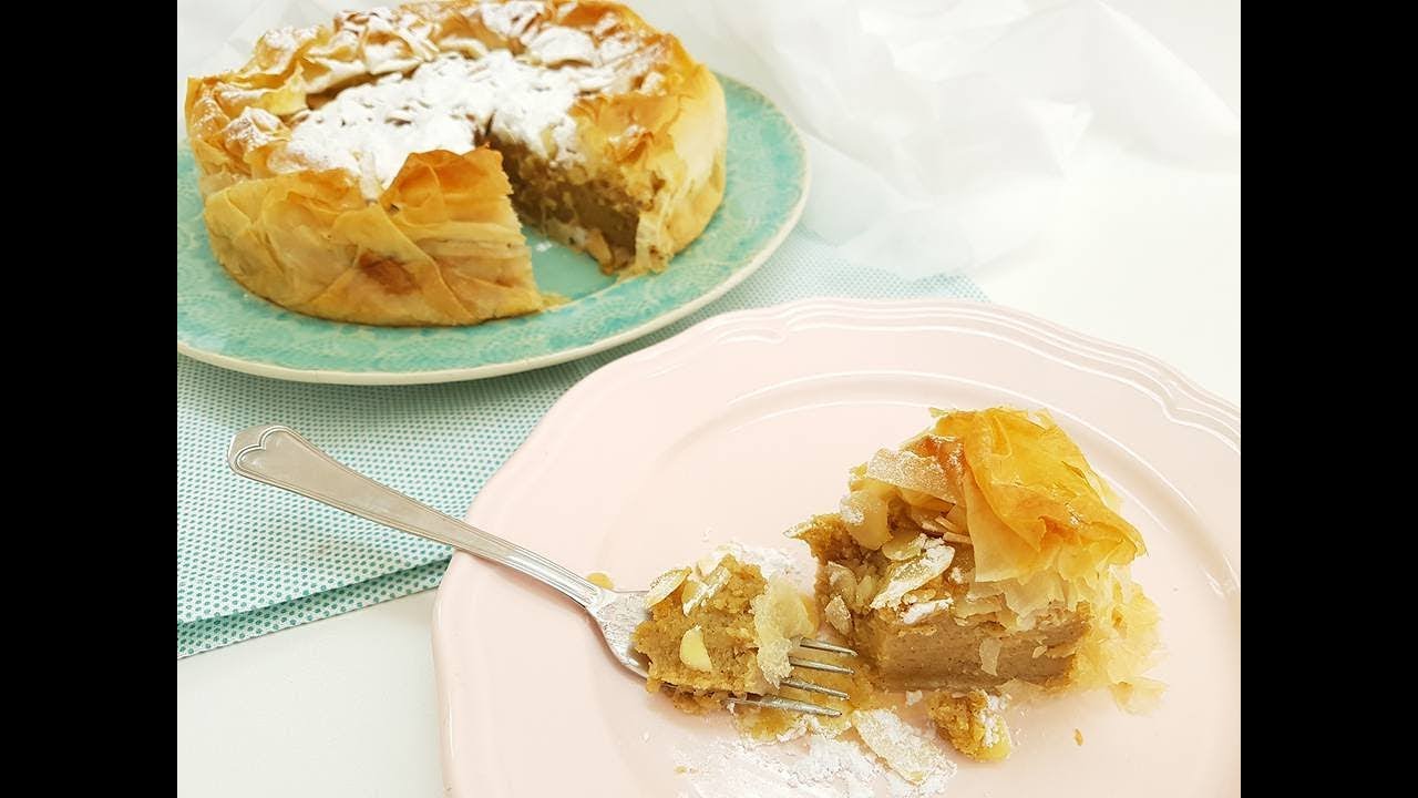 Essa é uma torta que utiliza a massa filo, que você encontra pronta para usar no supermercado. É uma torta bem suave e reconfortante para servir com chá ou café.