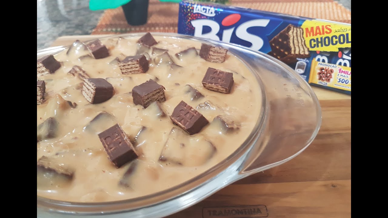 Outra ideia bem simples, prática e saborosa é fazer um creme de doce de leite com creme de leite e misturar com bastante Bis picado.