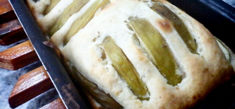 - Espalhe algumas rodelas de banana cobrindo o fundo da forma.