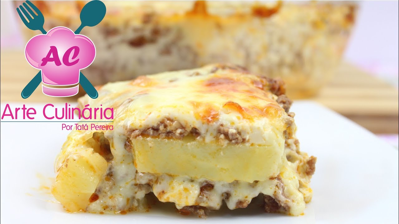 Essa receita é diferente porque tem mais molho de carne moída do que batatas, e as batatas são apenas laminadas, não em forma de purê. É mais uma opção para variar essa receita. Fica um lindo prato de forno para servir no almoço ou em um jantar no inverno para os amigos. Veja no vídeo o passo a passo: