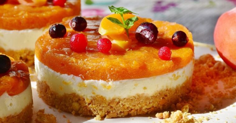 - Misture bem os ingredientes do recheio, preencha a torta e alise a superfície. Leve à geladeira por 3 horas antes de decorar com as frutas e desenformar.