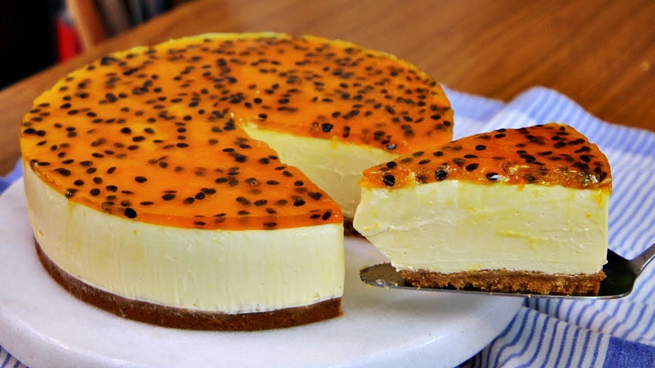 Essa torta fica bem alta e apetitosa. Também leva uma base crocante, mas só na parte de baixo. Se você quer sentir mesmo é a textura e o sabor da mousse, é a receita perfeita. Por cima ela é decorada com uma calda de maracujá que deixa o doce ainda mais bonito e gostoso. Veja a lista do que vai precisar e acompanhe o preparo: