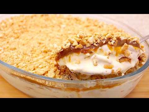 - Leve à geladeira de um dia para o outro, faça uma camada do doce de leite, e decore com o amendoim triturado.