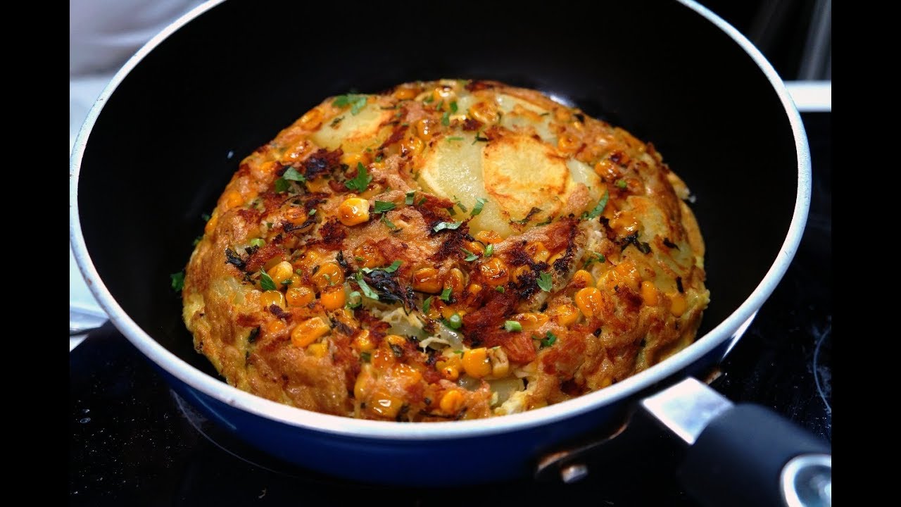 Para começar, a que se parece com uma omelete, só que mais consistente porque leva batatas.