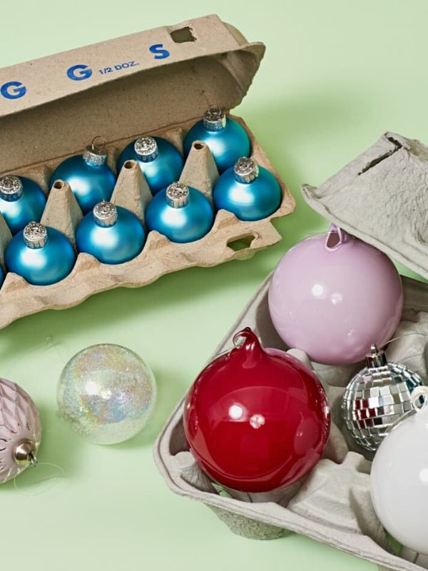 Para evitar deixar as bolas de Natal perdidas e misturadas dentro de uma grande caixa, guarde cada uma delas dentro de caixas de ovos.
