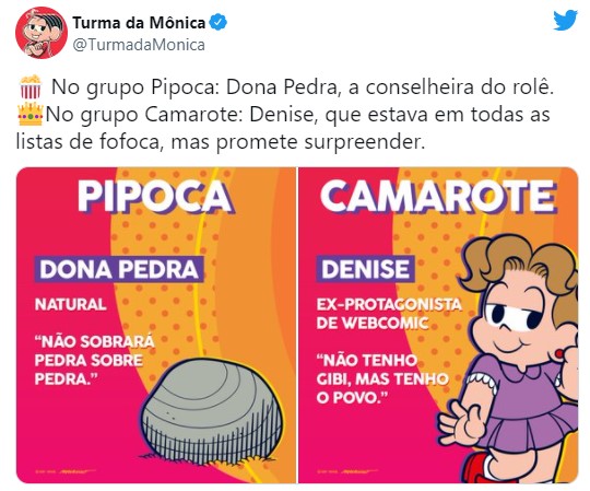 Nem a Turma da Mônica resistiu em acompanhar E comentar o Big Brother Brasil 22. A conta oficial da turminha no Twitter está de olho no programa, e não deixa passar um meme sequer! Tem de tudo: personagens ‘vetezeiros’, Chico Bento atendendo o Big Fone, pipocas e camarotes, e até torcida para os participantes da casa!