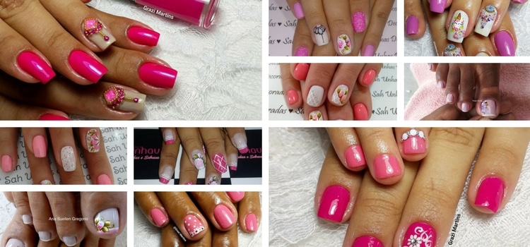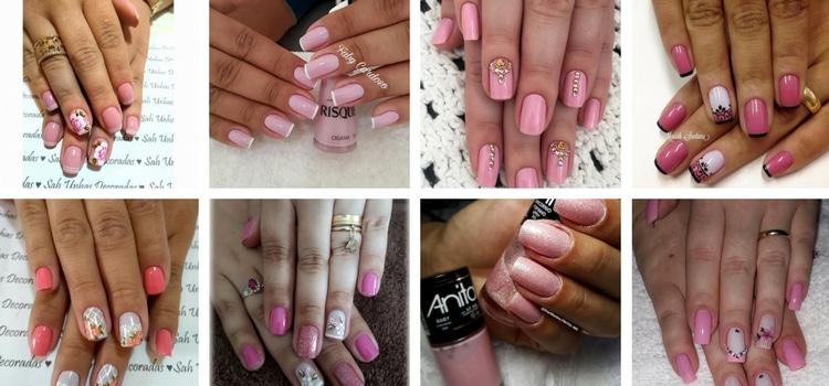 Seja fluorescente, cintilante, pink ou nude, todos os tipos de esmalte rosa combinam com decoração em pedras, desenhos de flores, francesinhas e geométricos.