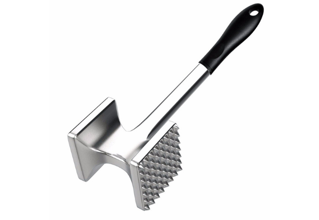 Muito comum na cozinha da mãe e da avó, o martelo de carne serve para afinar e, com isso, amaciar os bifes antes de cozinhá-los. Você usa esse utensílio ou já compra a carne mais fina para não ter que amaciar? Se acha útil, prefira os de metal, pois os de madeira são menos higiênicos.