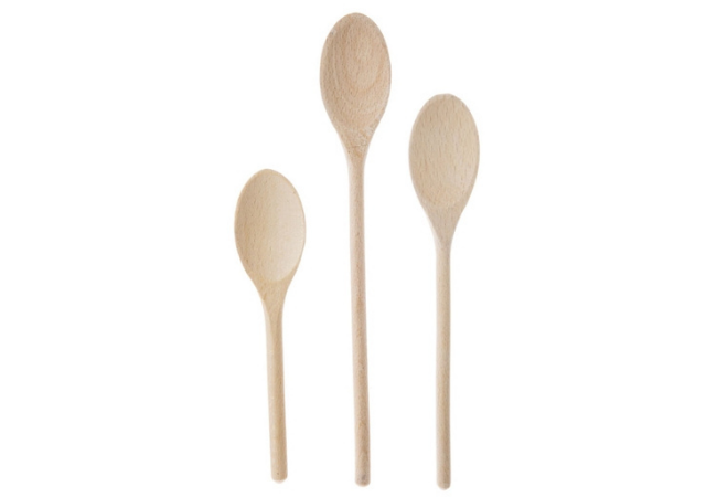 Esse você pode pensar que é um utensílio necessário, pois não risca o fundo das panelas. É verdade, mas a madeira absorve umidade, acumula germes e fica com cheiro ruim impregnado. Então, por isso, merece entrar na lista de utensílios inúteis e deve dar lugar à colher de silicone.