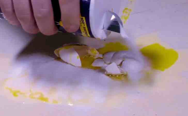 Deixar cair um ovo no chão vai provocar uma grande sujeira, mas sugerimos que jogue sal em cima, aguarde 10 minutos e remova tudo com um papel.