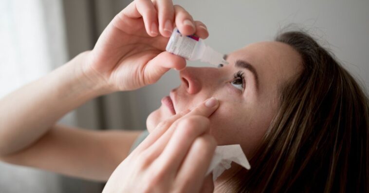 • Anti-inflamatórios, como flurbiprofeno ou diclofenaco, em forma de colírio ou comprimido para aliviar os sintomas de dor, vermelhidão e coceira;