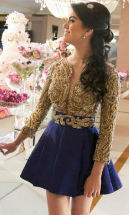 Os curtos podem sim ser usados nas festas de 15 anos, embora os tradicionais sejam estilo princesa. Tudo vai depender da personalidade da menina e da formalidade da sua festa. Os modelos podem ter mangas longas, saias de tule, cores delicadas ou vibrantes.