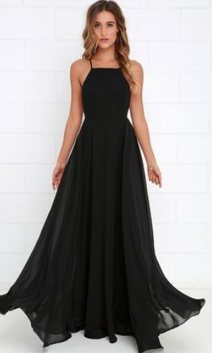 Há formandas básicas e discretas, então, o preto nunca decepciona. Esse é um modelo com tecido muito bonito e delicado, mas mantém a segurança, sem ser muito degotado, com alças firmes e um comprimento confortável.