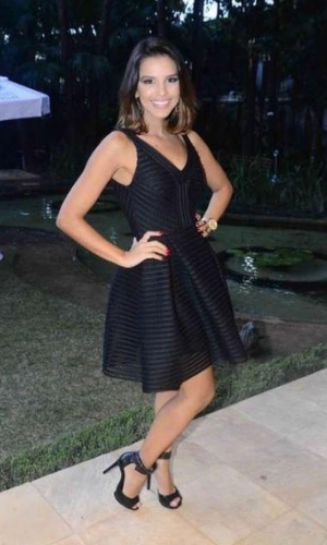 Com um decote canoa, mais comportado, o ponto alto desse vestido está na saia, que é toda rendada e transparente, pois há uma base curta e justa por baixo.