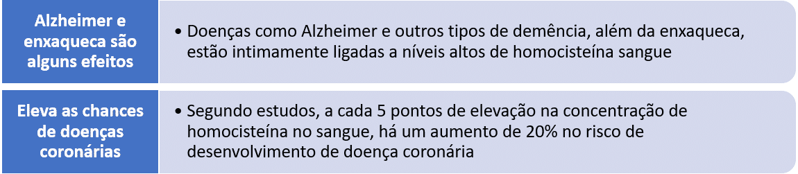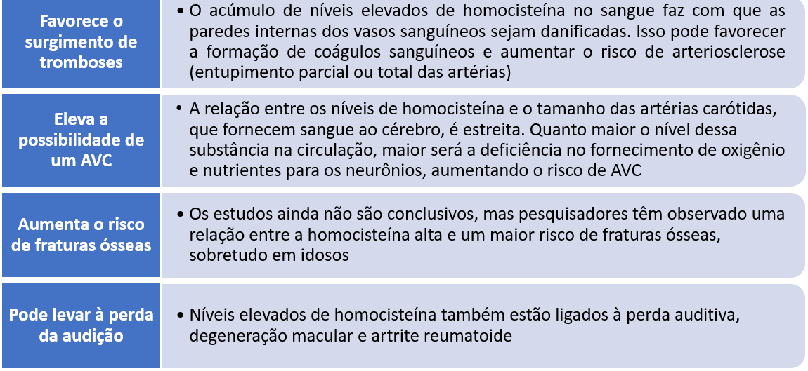 Os estudos ainda estão sendo concluídos e ainda não há dados suficientes para culpar a homocisteína por todos os males associados à nossa circulação sanguínea, mas ela se torna uma perigosa se o nível dela no sangue for superior a 14μmol/L.