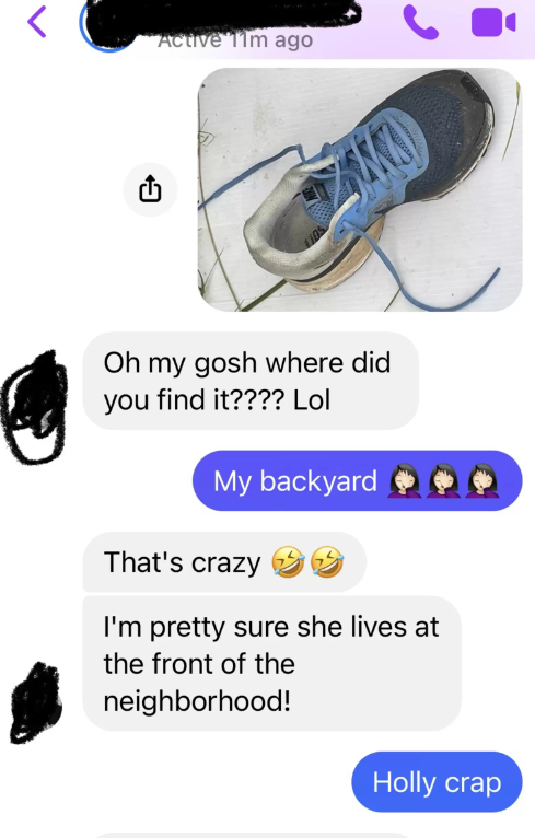 “Não demorou muito para nossa caminhada inicial de vergonha de devolver um Nike que havia uma postagem [na] página do Facebook do nosso bairro de alguém que havia deixado seus sapatos secar durante a noite e acordou com um faltando”, disse Samantha.