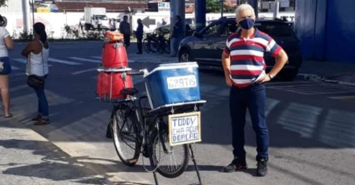 Para isso, tira dinheiro do próprio bolso e prepara chá, café, leite com achocolatado, pães com manteiga e biscoito. Coloca tudo em uma caixa de isopor e leva em sua bicicleta para os bairros do boqueirão e Aviação, mais próximos da sua residência. Em suas palavras, “isso traz benefícios, tanto para quem entrega quanto para quem recebe. Com isso, eu também me renovo e utilizo o amor como combustível“.