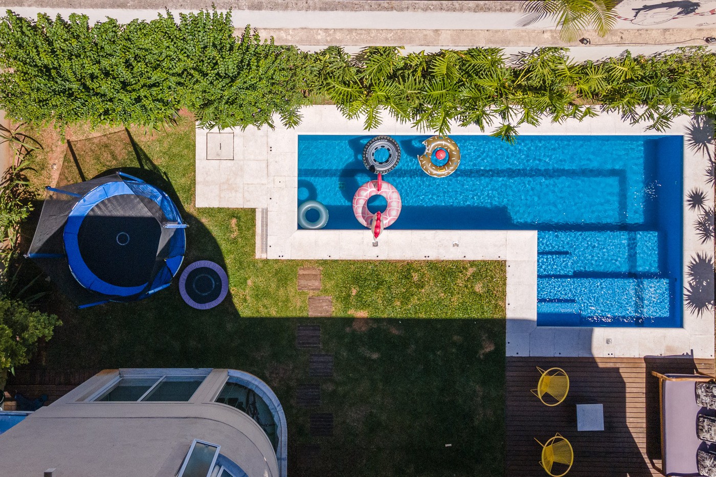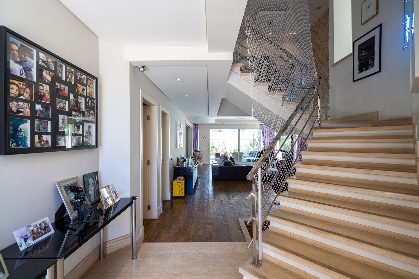 Na área externa, uma piscina cercada por gramado e um lindo paisagismo formam o espaço perfeito para os dias de primavera e verão. Veja mais algumas fotos.