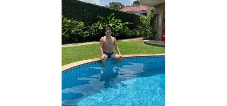 O músico surpreendeu os fãs ao publicar uma foto sem camisa na piscina de casa